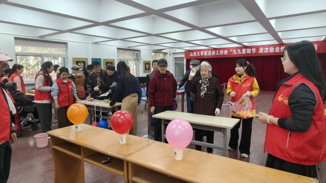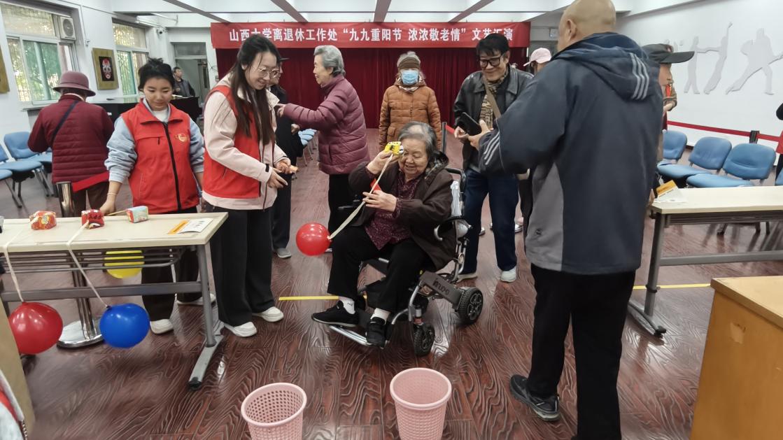 10月29日上午,志愿服务暖流持续涌动。活动入口处,身着红色志愿马甲的同学们早早守候,搀扶行动不便的老教师、解答疑问,一句句贴心叮嘱如秋日暖阳熨帖人心。物资组装区,志愿者们专注组装送给老教师的的手推车,拧螺丝、装轮轴、反复检查,力求扎实稳固。活动室内的三个小游戏区域成为了“快乐磁场”。“乒乓球砸气球”“气球沙包投桶”“纸杯乒乓抛投”活动中,志愿者们全程陪伴引导,帮忙调整站位、演示技巧、贴心搀扶、及时鼓励,让爷爷奶奶们在每一个游戏中都能舒心参与,让趣味游戏成为连接代际温情的纽带。